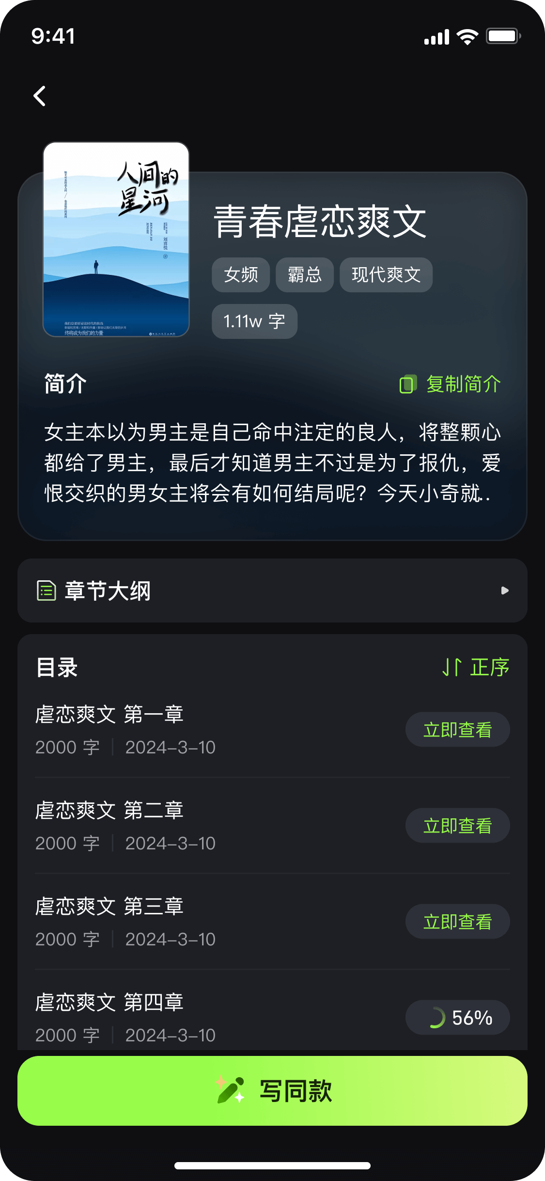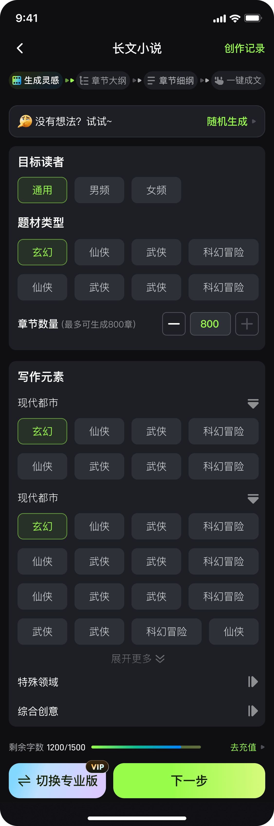 AI 小说创作精灵 APP,一部手机就能解锁高效创作!无论通勤路上、午休片刻,打开 APP,随时随地开启小说创作。 APP 基于前沿自然语言处理与深度学习技术,提供全流程创作辅助。输入 “末日废墟”“机械觉醒” 等关键词,AI 秒速生成完整故事框架,覆盖主线、关键事件与叙事节奏;结合热血爽文、悬疑烧脑等风格设定,自动赋予故事独特基调。角色塑造上,仅需描述 “坚韧女特工,左眼佩戴机械义眼”,AI 即可从外貌、性格、背景等多维度构建立体人设,连口头禅、标志性动作都能精准生成。 面对场景描写难题,智能场景生成功能即刻响应。无论是惊心动魄的追车戏,还是缱绻浪漫的告白场景,输入主题与氛围需求,AI 输出画面感十足的细节描写。内置海量经典小说案例库,支持实时检索,为灵感续航。 在创作体验上,APP 支持语音输入,释放双手;具备实时保存与多端同步功能,手机、平板、电脑进度无缝衔接;还搭载错别字检测与语法纠错,保障文字质量。无论是网文新手还是资深作者,AI 小说创作精灵都能助你快速将创意转化为优质作品,让创作不再困难!